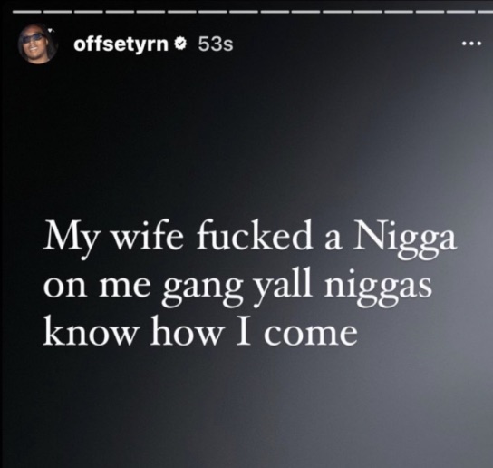 “My wife fucked a N*gga on me gang yall n*ggas know how I come.”